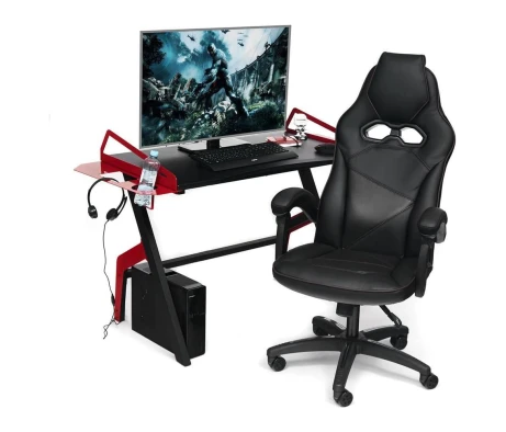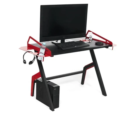 Покупала этот стол перед новым годом в качестве подарка своему парню. Он любитель поиграть в компьютерные игры. Стол очень удобный, есть подставка под ноги, сбоку можно повесить наушники. В общем, парень доволен и я, соответственно, тоже)