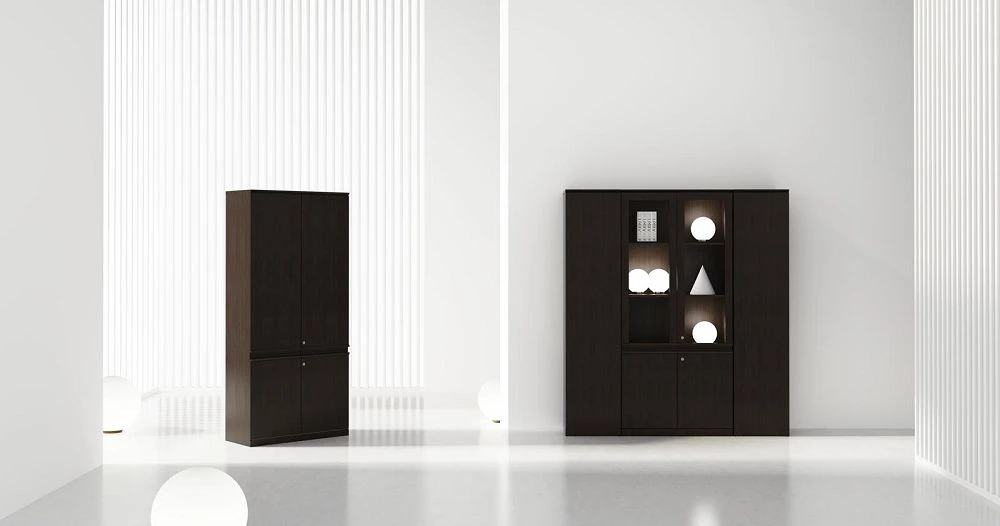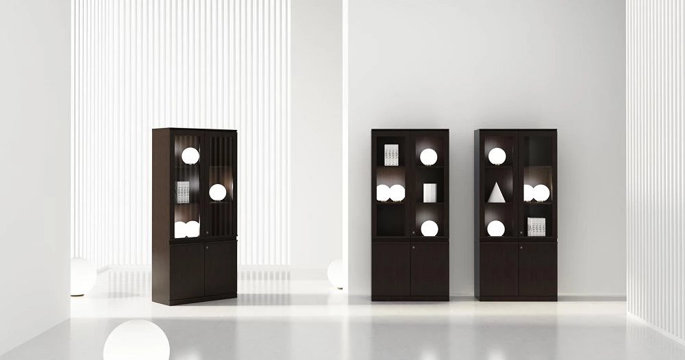 Двери: ЛДСП/шпон; прозрачное стекло в деревянной рамке