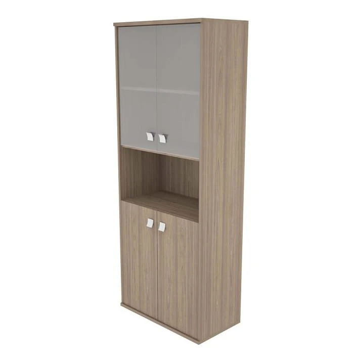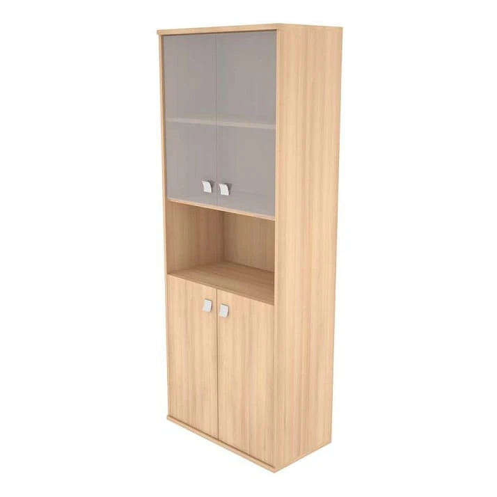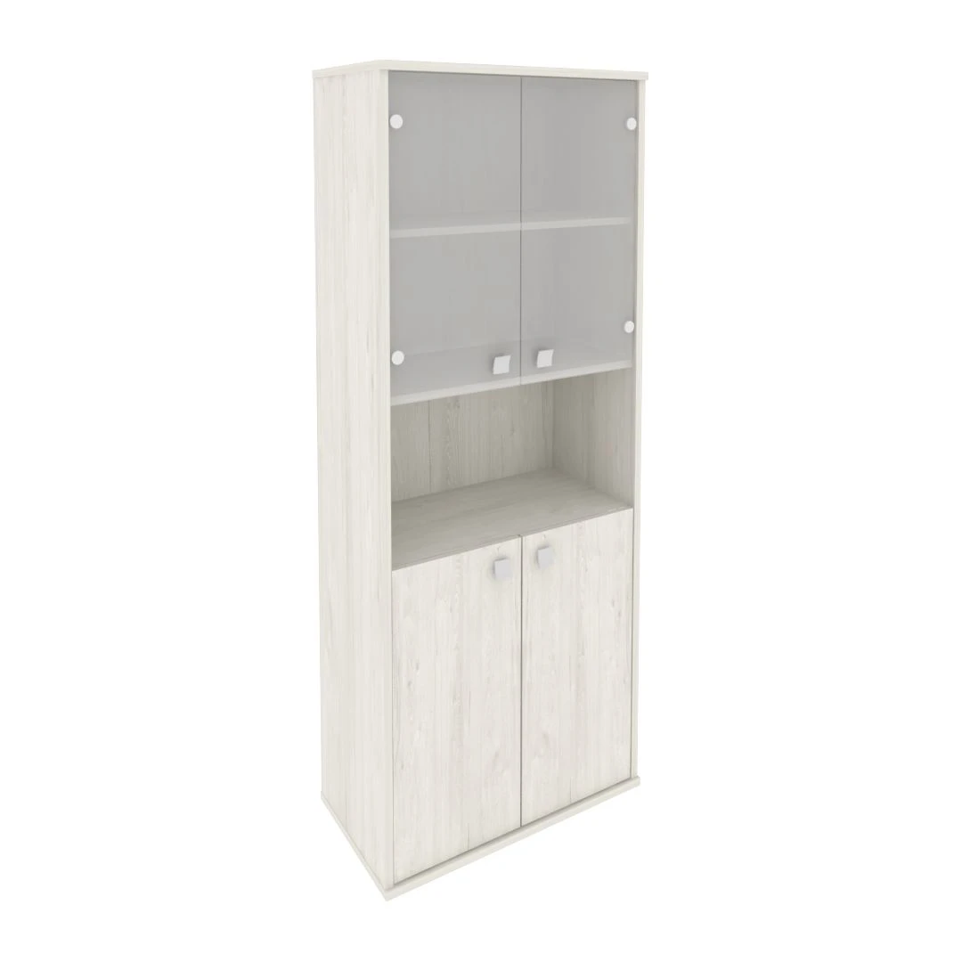 Шкаф высокий широкий 2 низкие двери ЛДСП 2 низкие двери стекло Стайл Систем / Style System