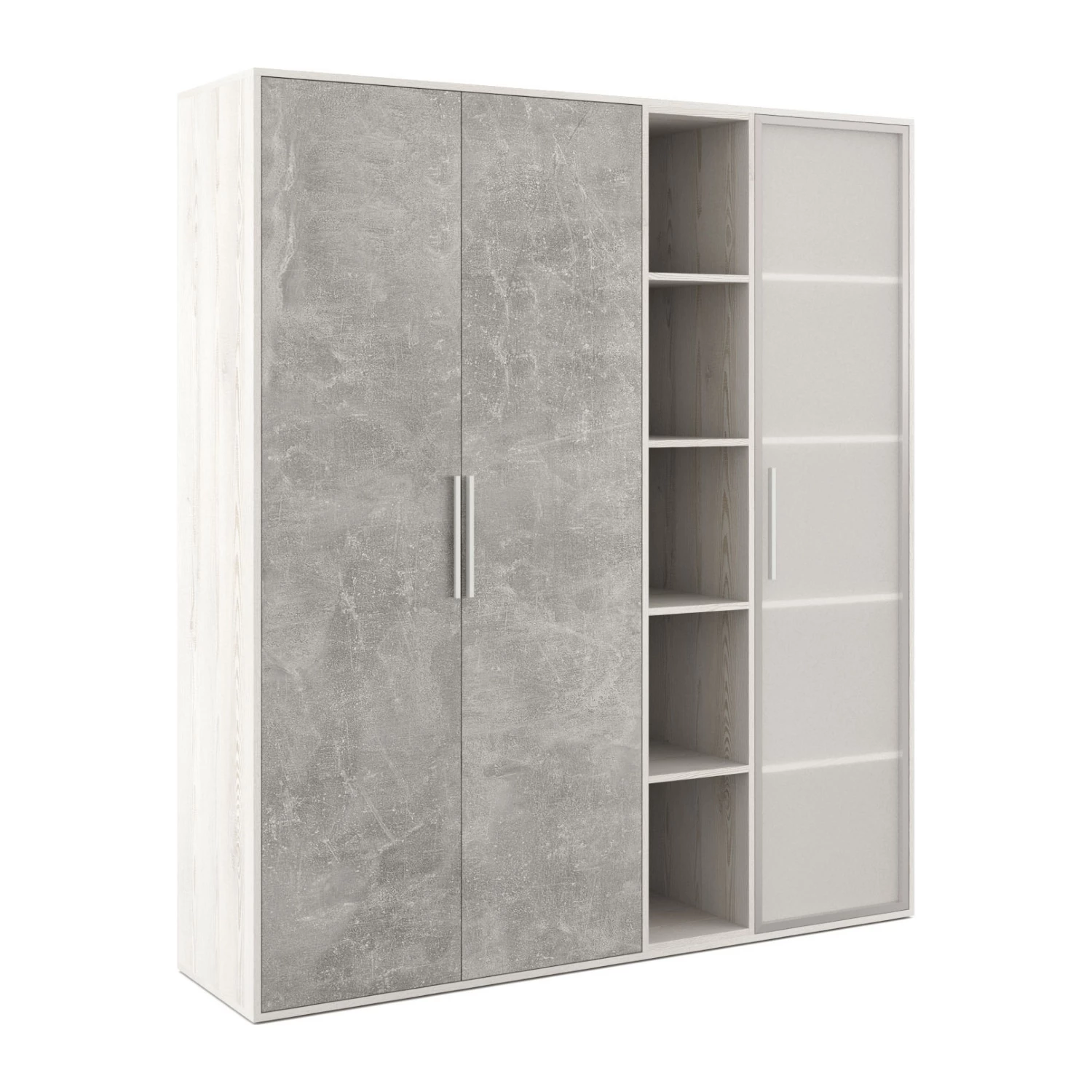 Шкаф высокий 3 створки стекло, с нишей Би-тон / B-tone Сосна/Бетон светлый