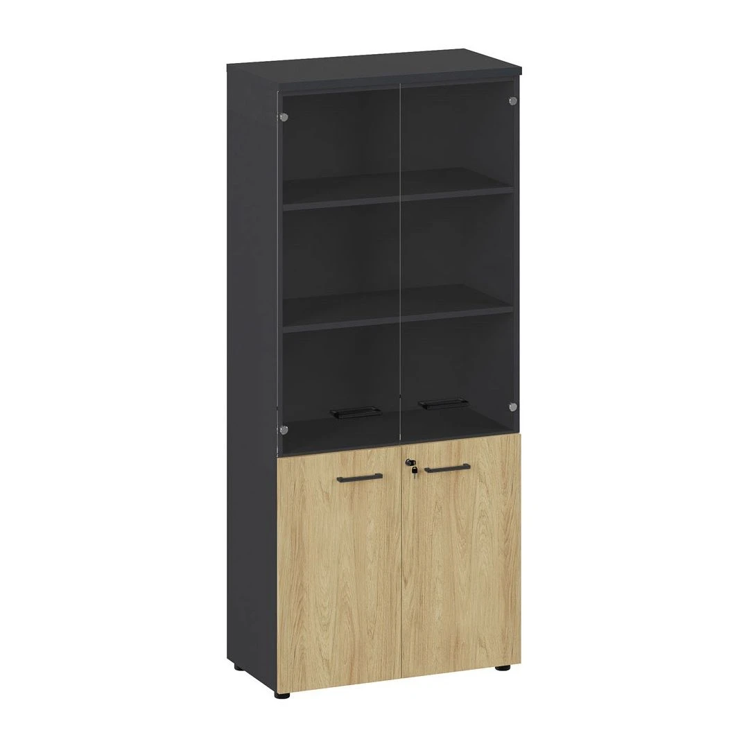 Шкаф высокий комби стекло ч. 80х42х185 Flex Гикори/Графит