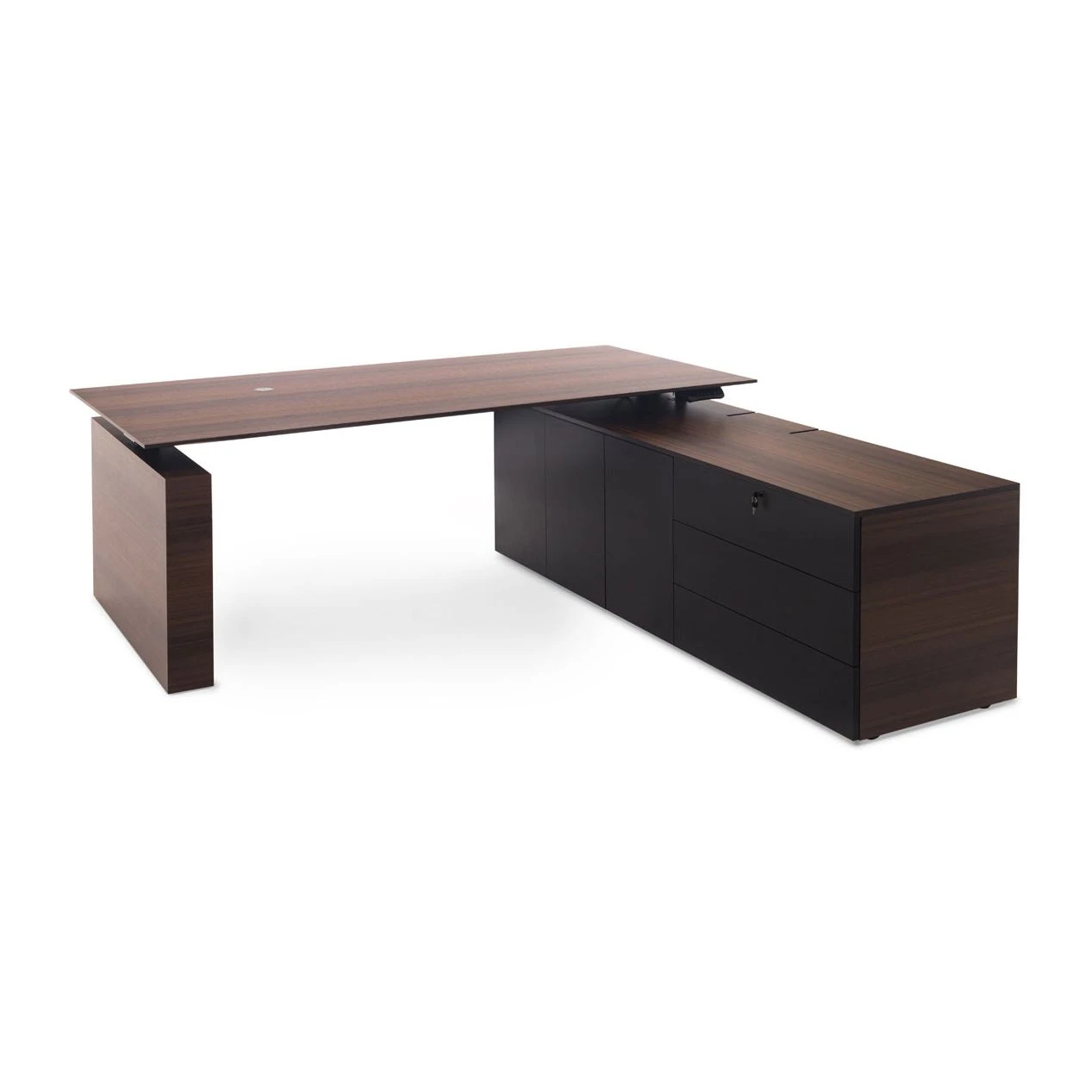 Стол письменный с тумбой DX 200x200x75-130 Tesla Эвкалипт морен/Черный