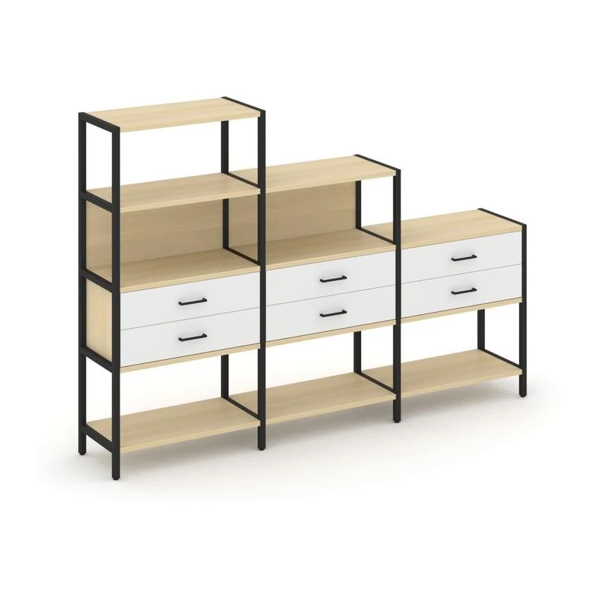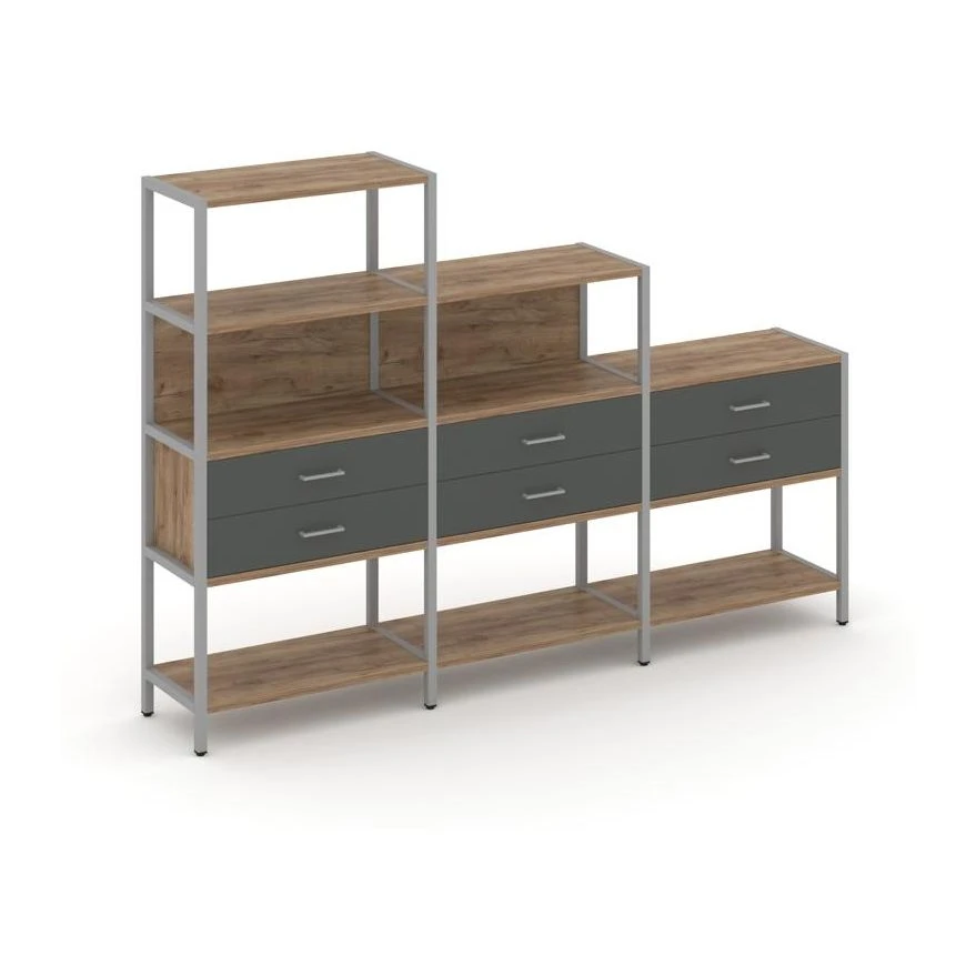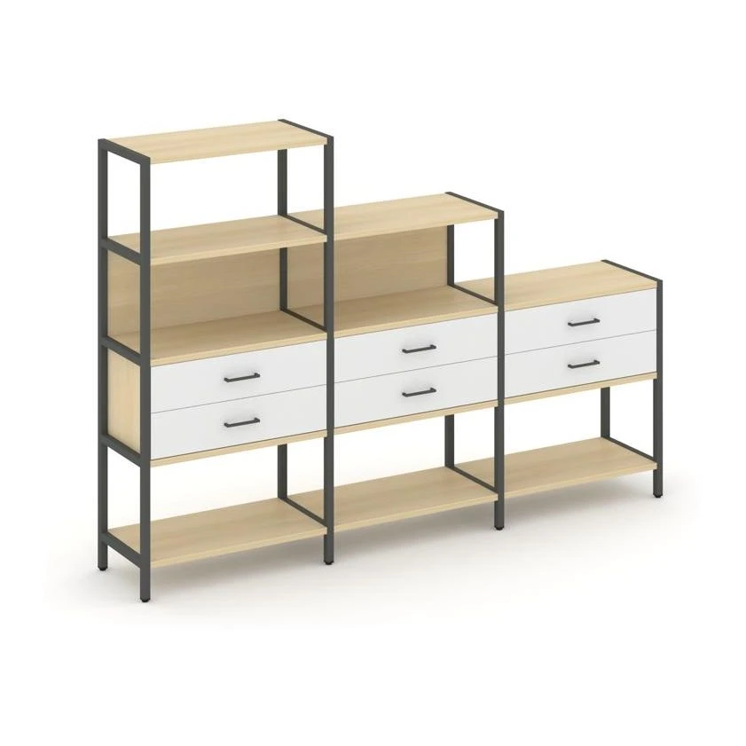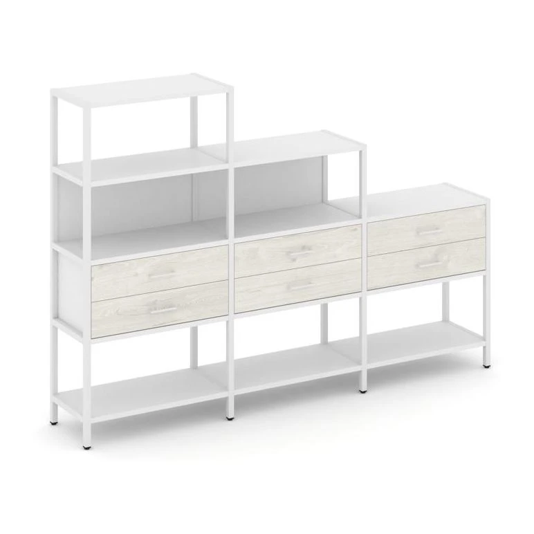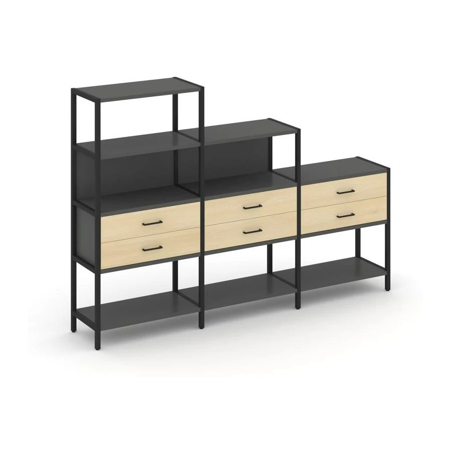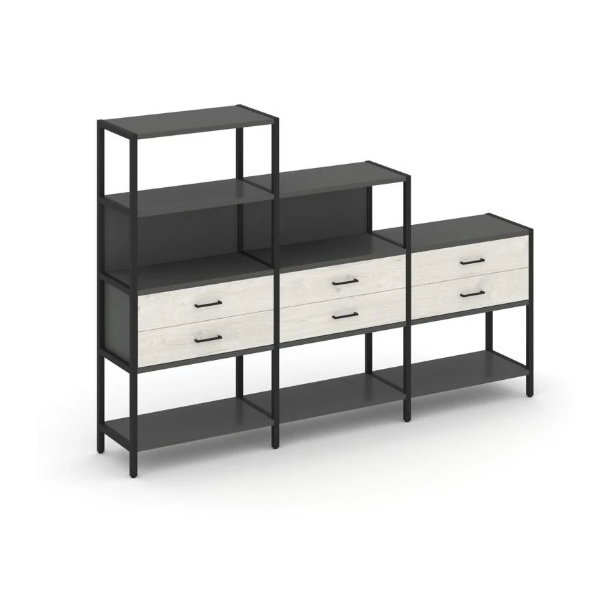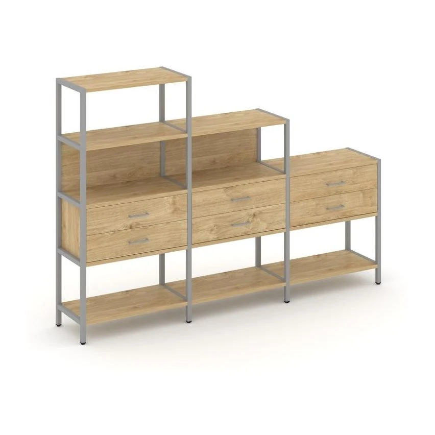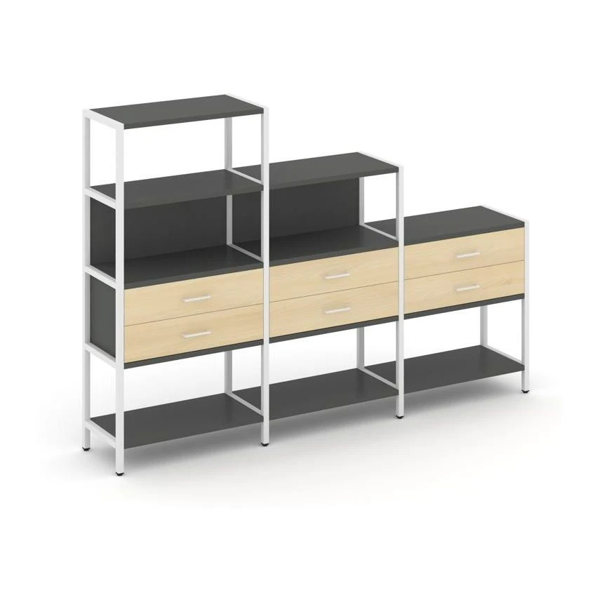 - Трехсекционный стеллаж четырех/трех/двухярусный с ящиками 2730х400х1613 Шелф Систем / Shelf System