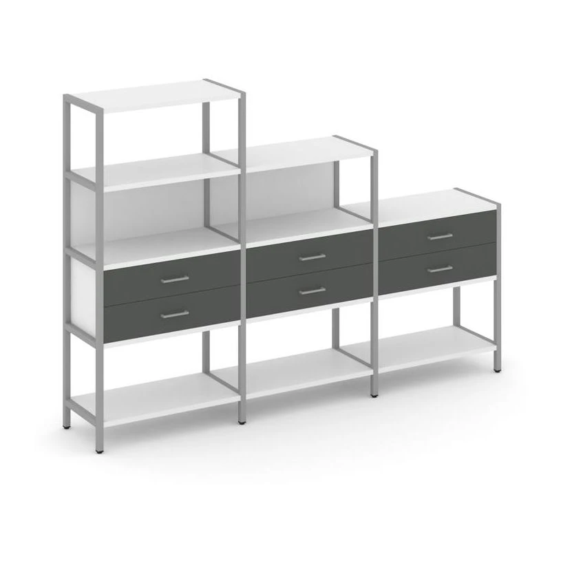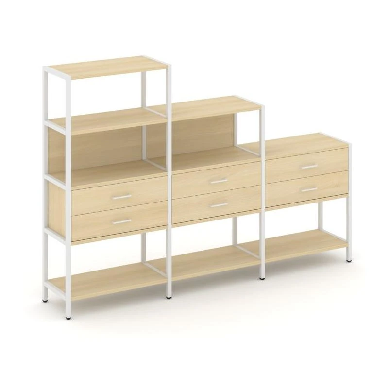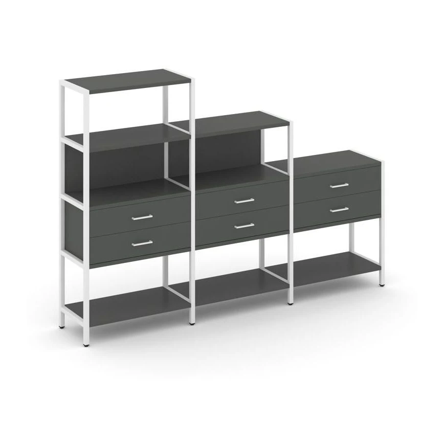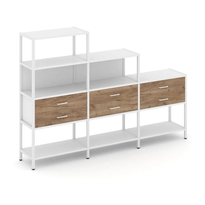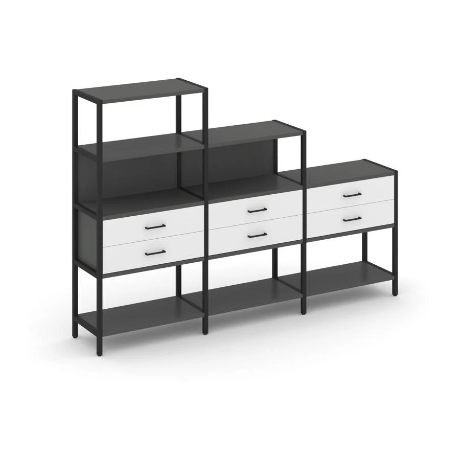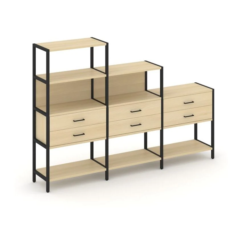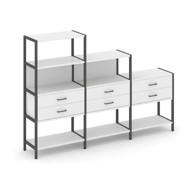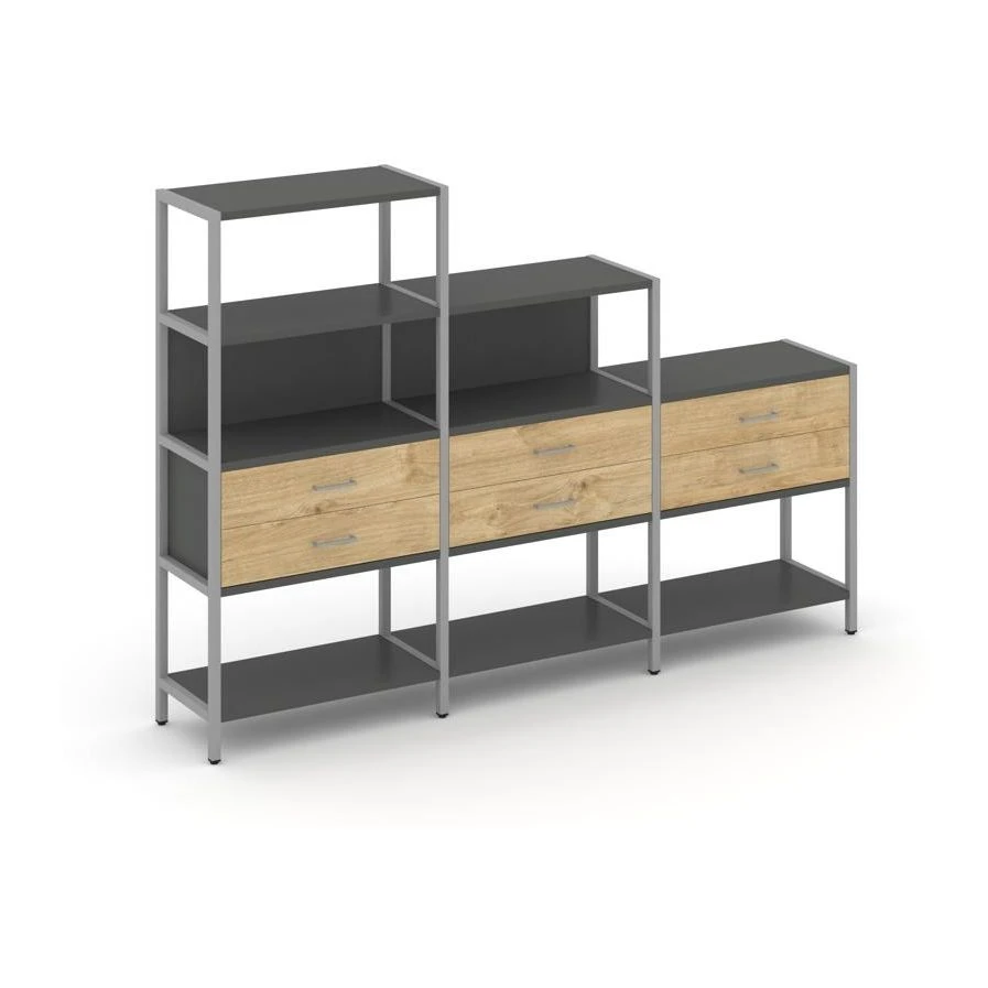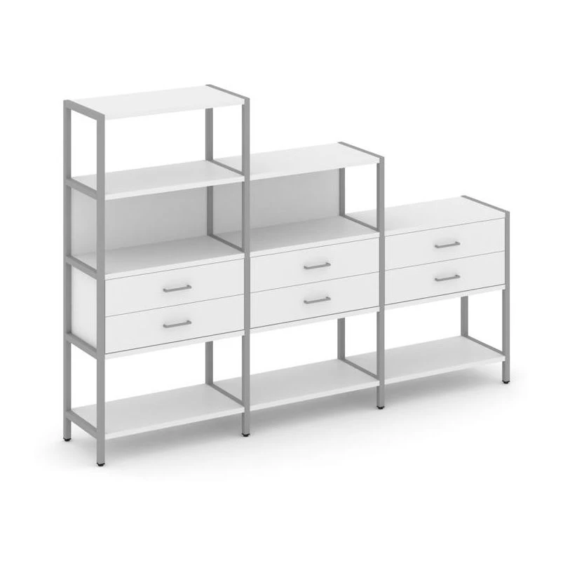 - Трехсекционный стеллаж четырех/трех/двухярусный с ящиками 2730х400х1613 Шелф Систем / Shelf System