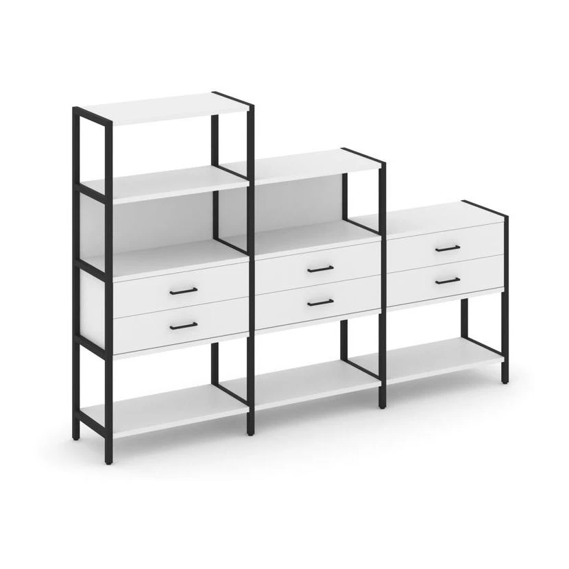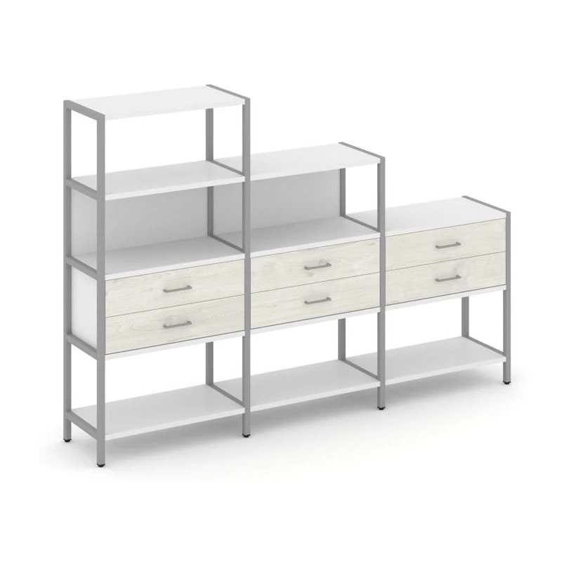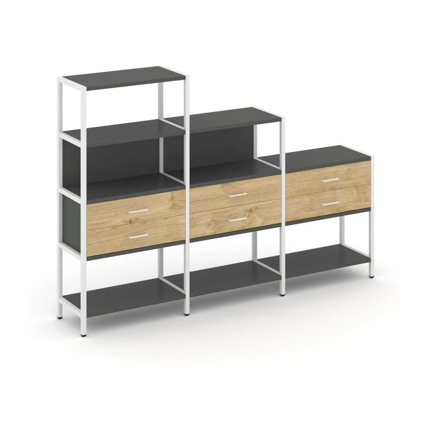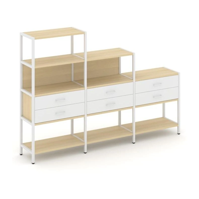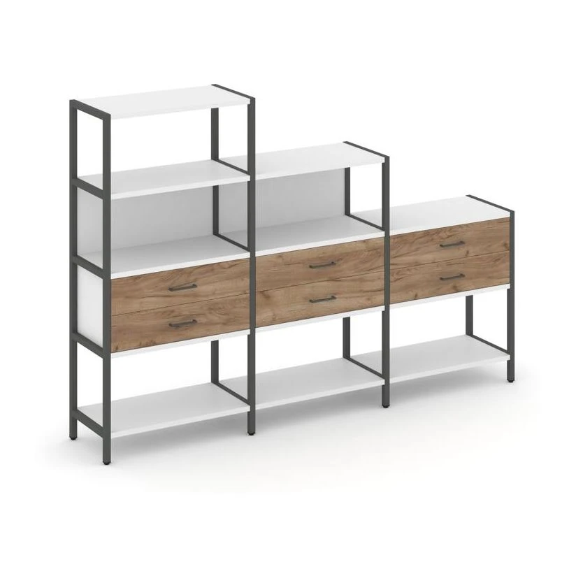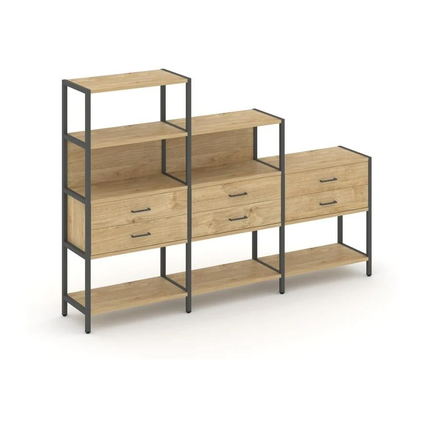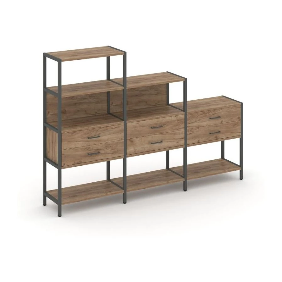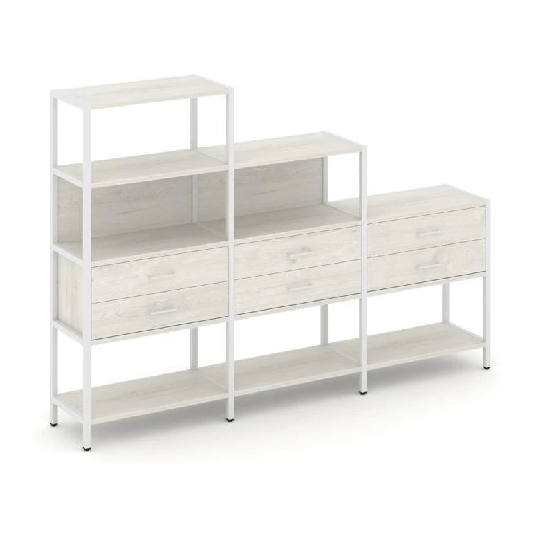 - Трехсекционный стеллаж четырех/трех/двухярусный с ящиками 2730х400х1613 Шелф Систем / Shelf System