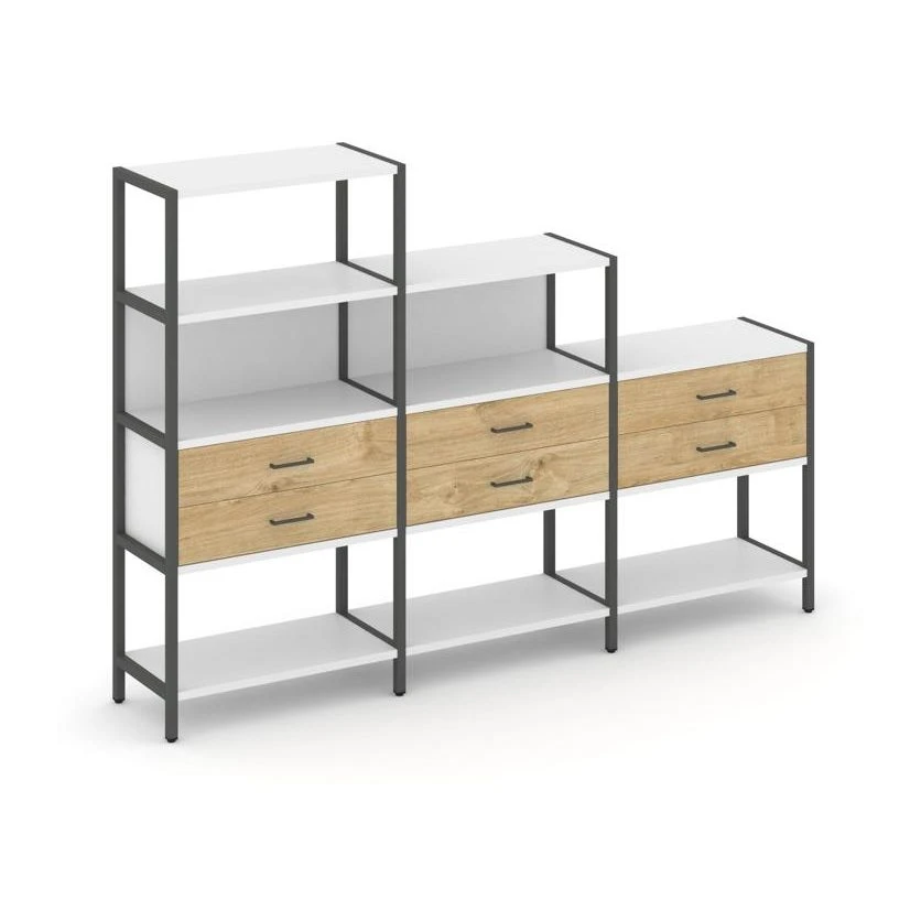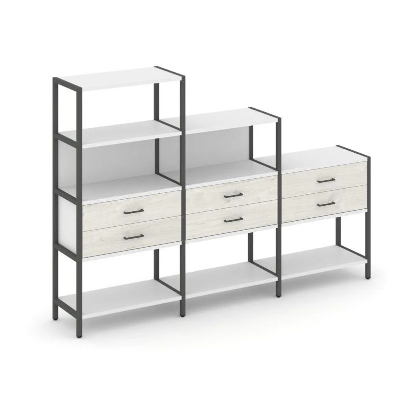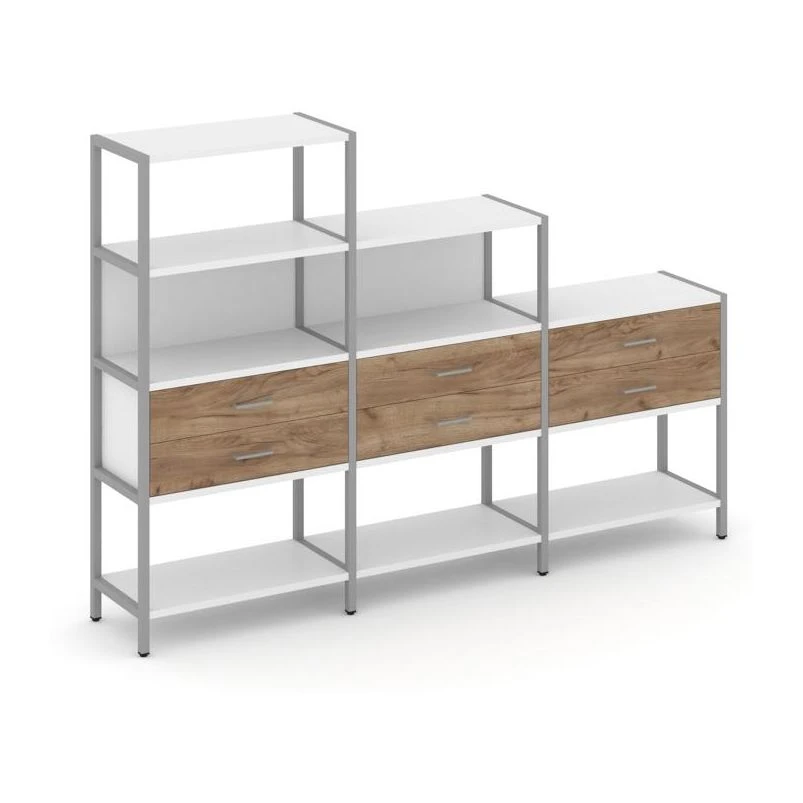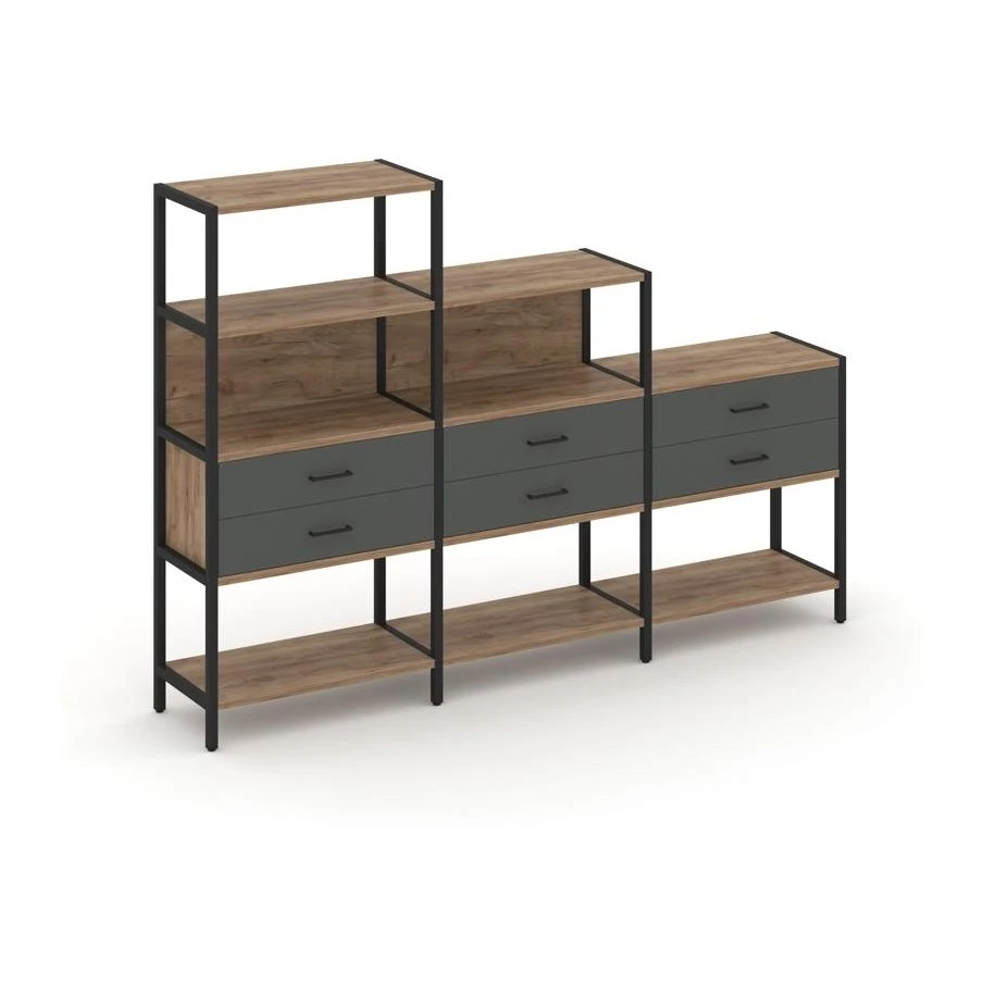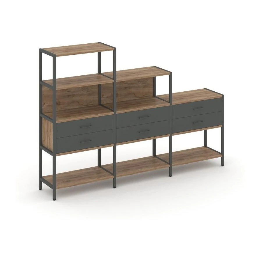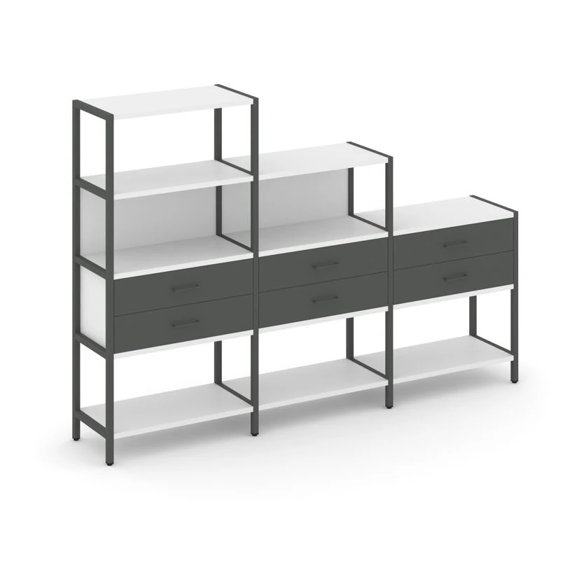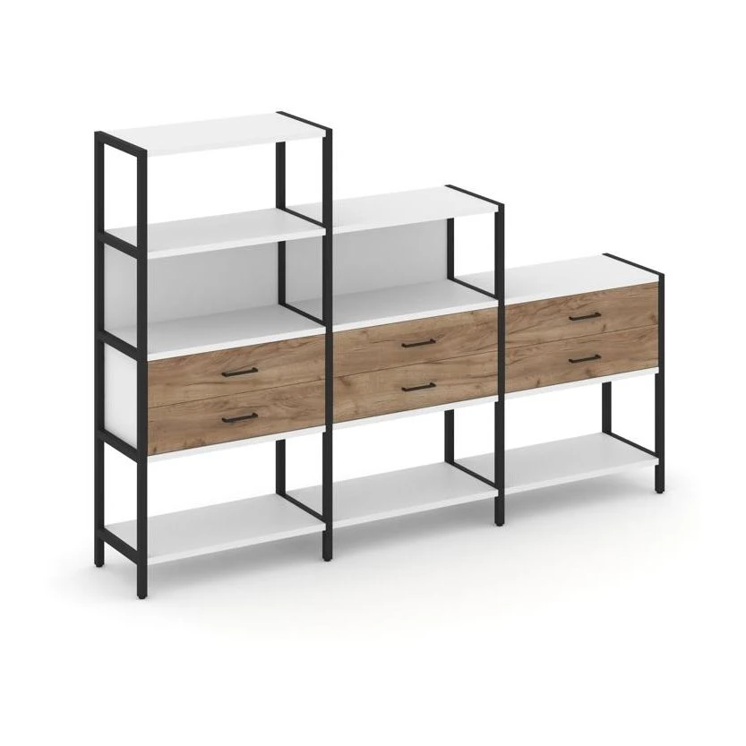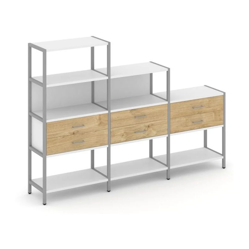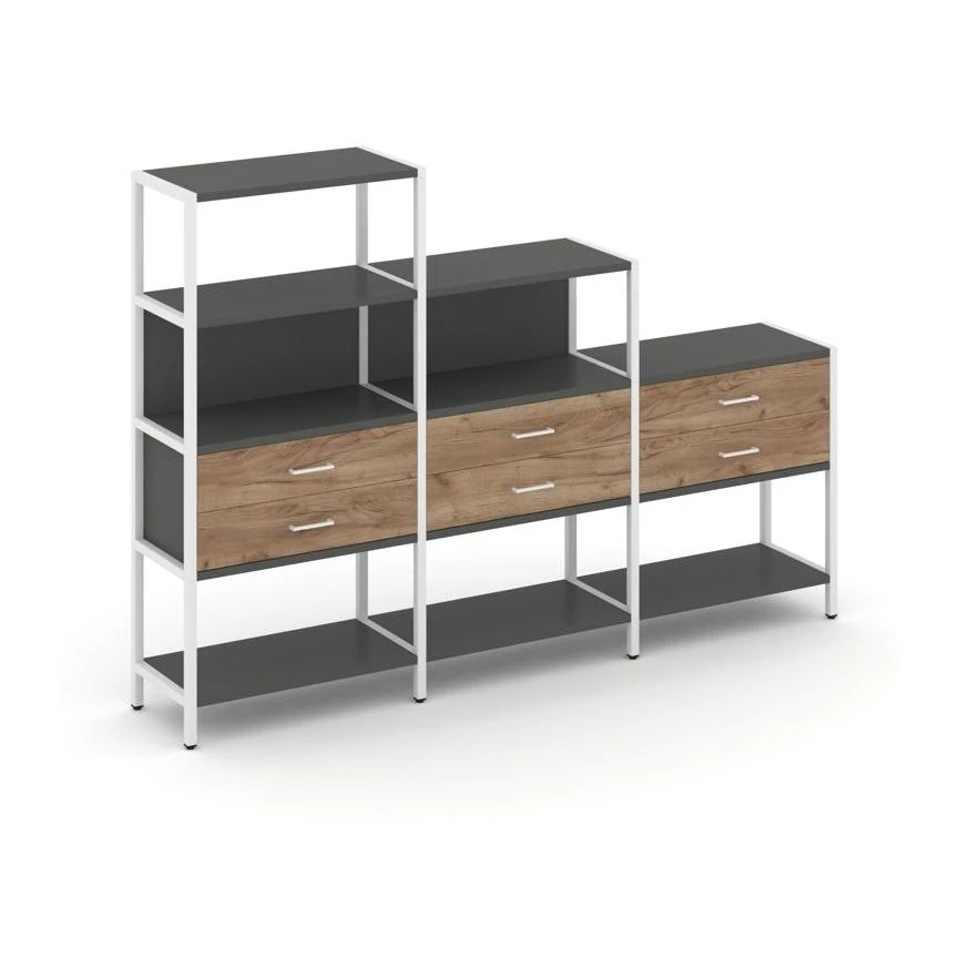 - Трехсекционный стеллаж четырех/трех/двухярусный с ящиками 2730х400х1613 Шелф Систем / Shelf System