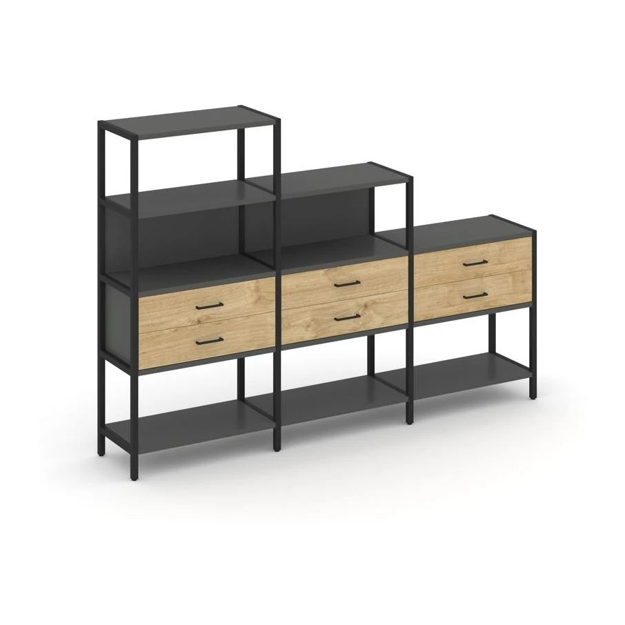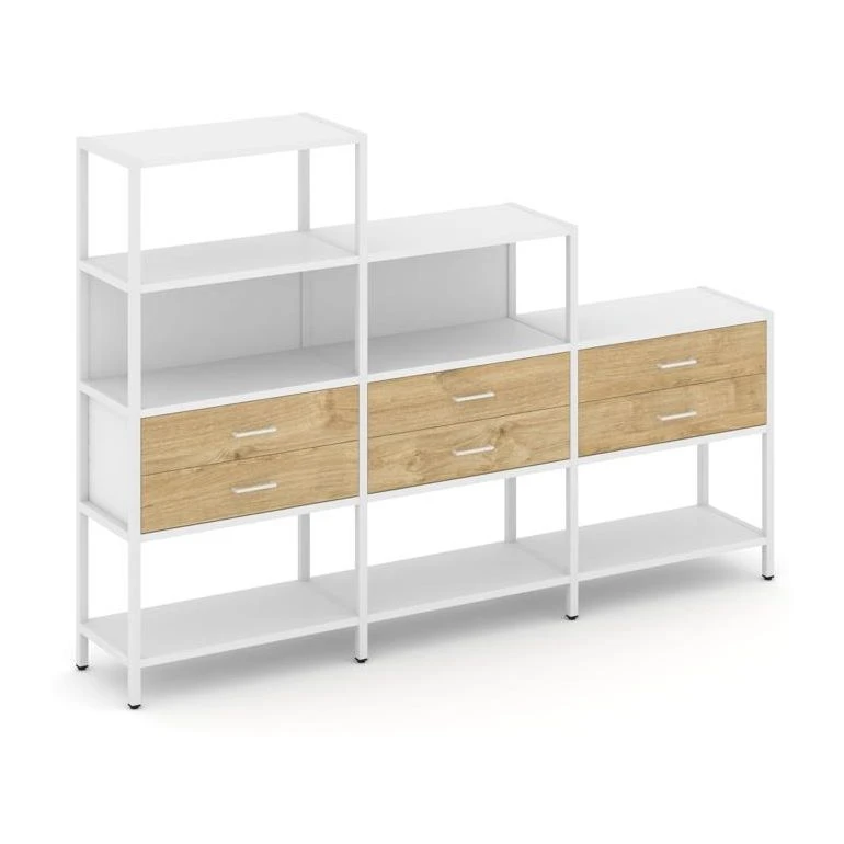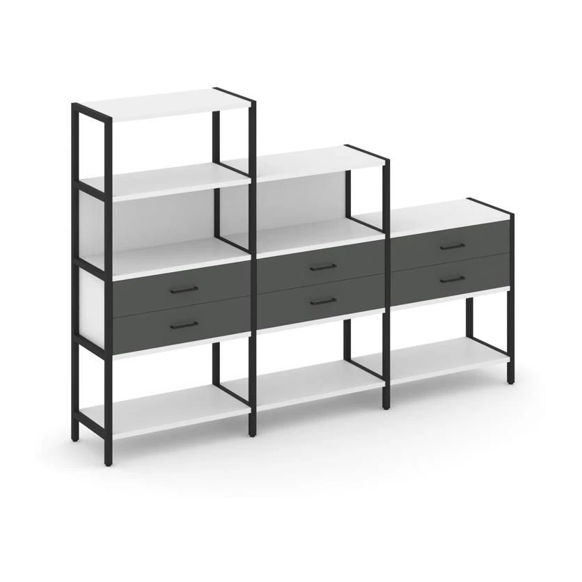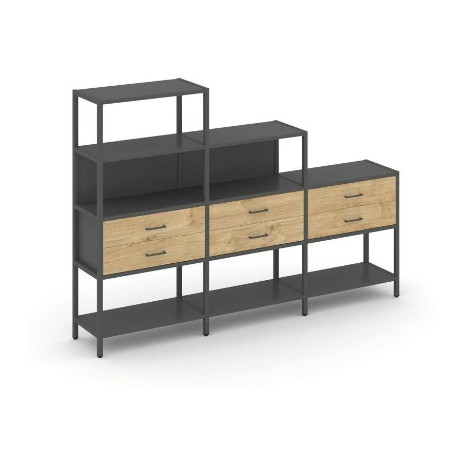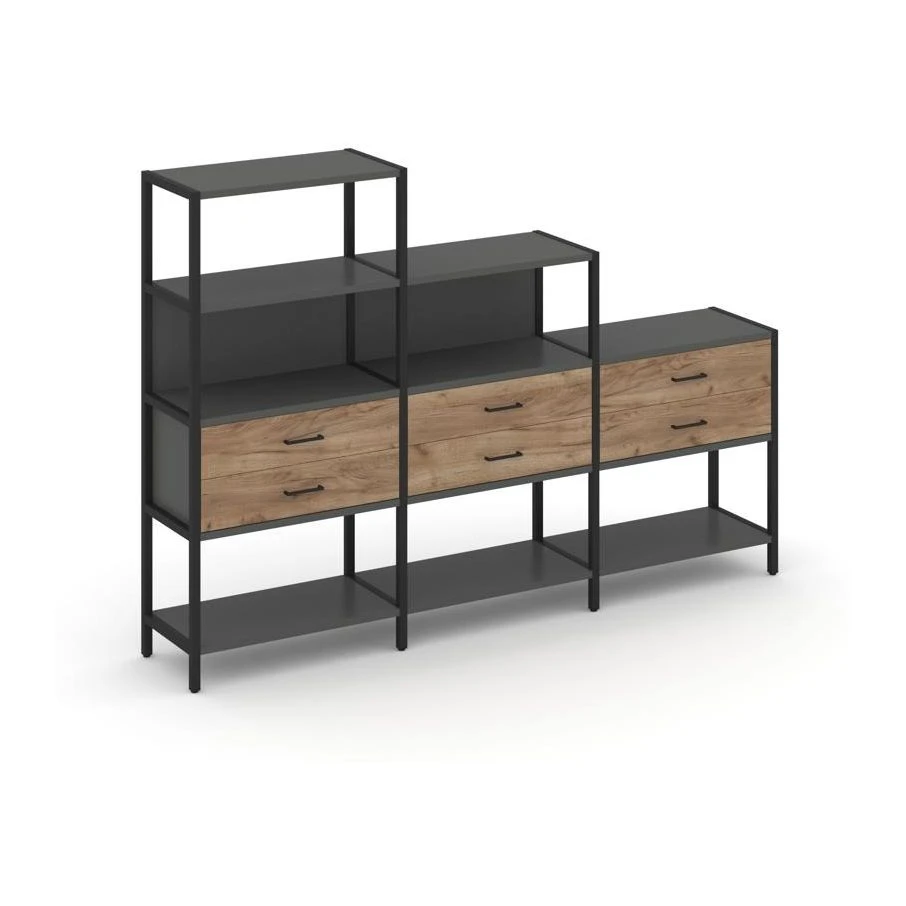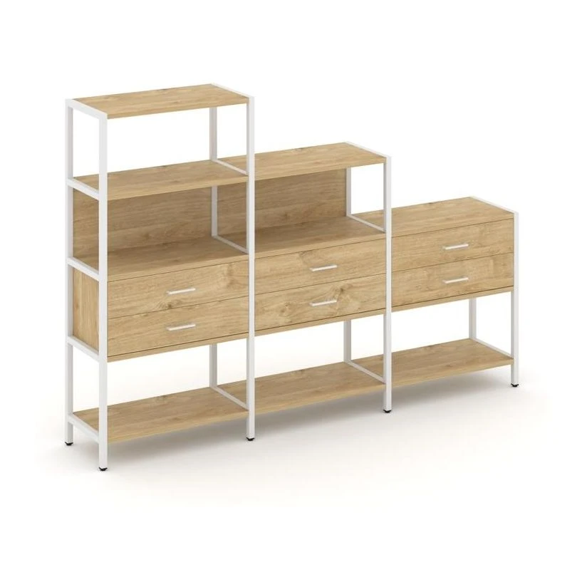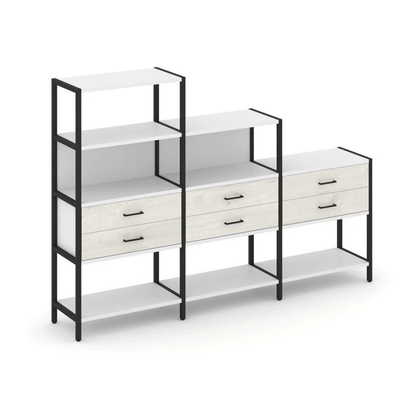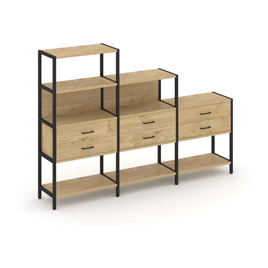 - Трехсекционный стеллаж четырех/трех/двухярусный с ящиками 2730х400х1613 Шелф Систем / Shelf System