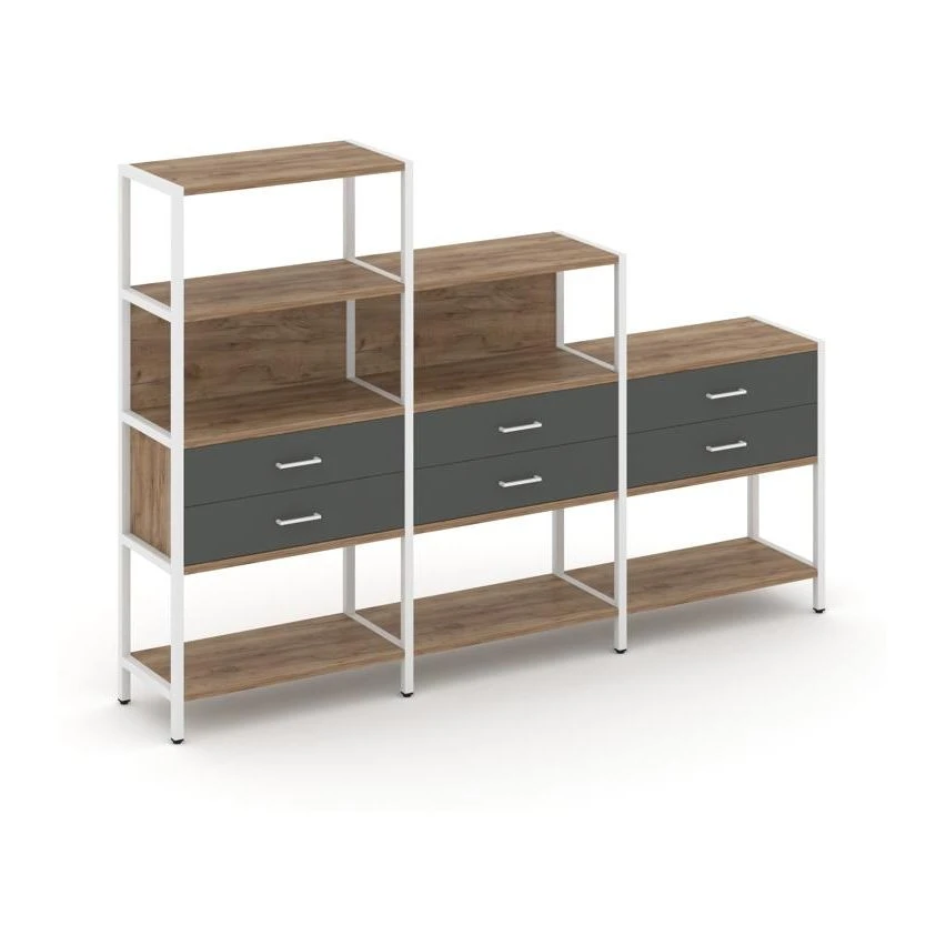 Трехсекционный стеллаж четырех/трех/двухярусный с ящиками 2730х400х1613 Шелф Систем / Shelf System